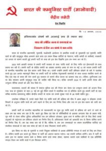 भारत की Communist पार्टी (मार्क्सवादी) की केंद्रीय Committee ने जारी किया बयान