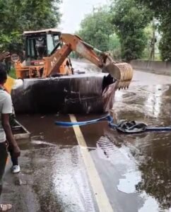 हादसे की चपेट में आते ही मिनी ट्रक का टेंकर फूट पड़ा और उसमें भरा हानिकारक केमिकल सड़क पर बहने लगा। यह केमिकल, जो संभवतः सॉल्वेंट या एसिड आधारित पदार्थ था, तेज गंध वाला और ज्वलनशील होने के कारण हवा में फैल गया। देखते-देखते यह रसायन सड़क से पार होकर नजदीकी खारुन ग्रीन कॉलोनी तक पहुंच गया। कॉलोनी के दर्जनों घरों के आंगन, गलियों और यहां तक कि खुली नालियों में केमिकल फैल गया, जिससे रहवासी परिवार घबराहट में घरों से बाहर निकल आए। एक बुजुर्ग महिला ने बताया, “अचानक तेज स्मोक और जलन भरी गंध आने लगी। बच्चे खांसने लगे, हमने सोचा आग लग गई है। घर के बाहर केमिकल का धुआं फैलते देखा तो जान बचा कर भागे।” कॉलोनी में रहने वाले एक युवक के अनुसार, केमिकल के संपर्क में आने से उनकी आंखों में जलन हो गई और त्वचा पर लाल चकत्ते उभर आए।