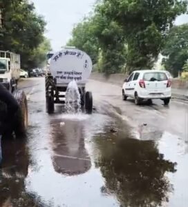 Bhilai ब्रेकिंग: टायर फटने से केमिकल लोडेड मिनी Truck पलटा, सड़क पर भारी जाम और रहवासियों में दहशत