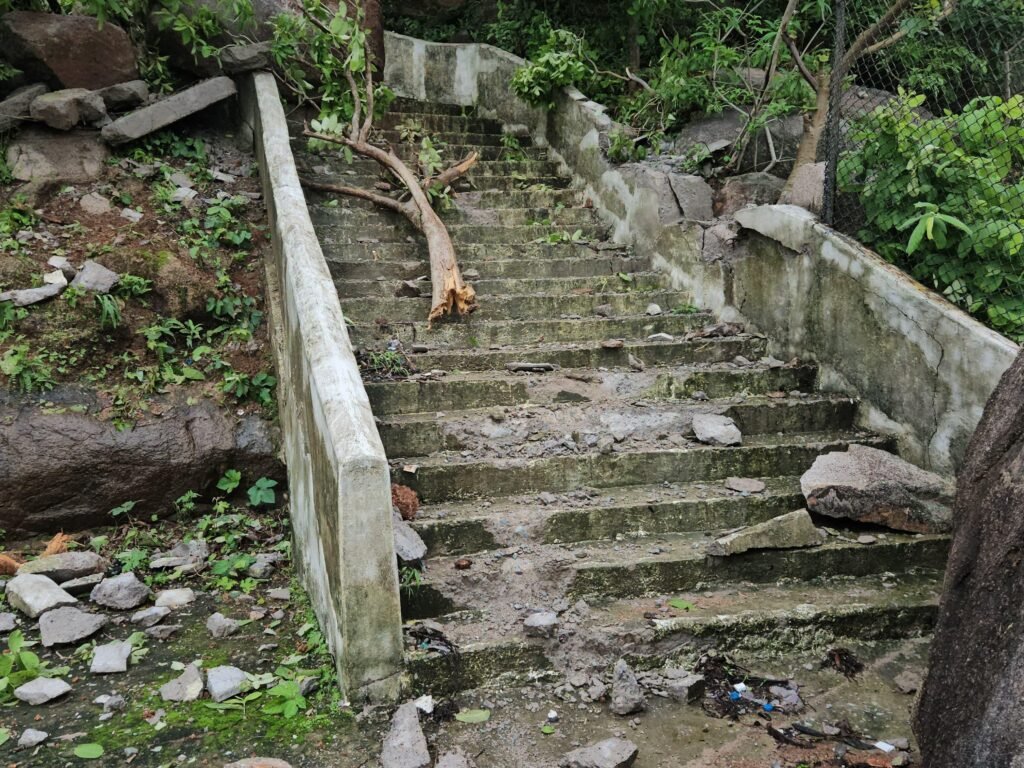 सीढ़ियां और पेड़ों को भारी नुकसान