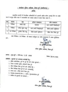 यह स्थानांतरण आदेश 28 जनवरी 2026 को जारी किया गया है। पुलिस प्रशासन का कहना है कि यह फेरबदल प्रशासनिक सुचारू संचालन और कानून व्यवस्था को मजबूत करने के उद्देश्य से किया गया है।
