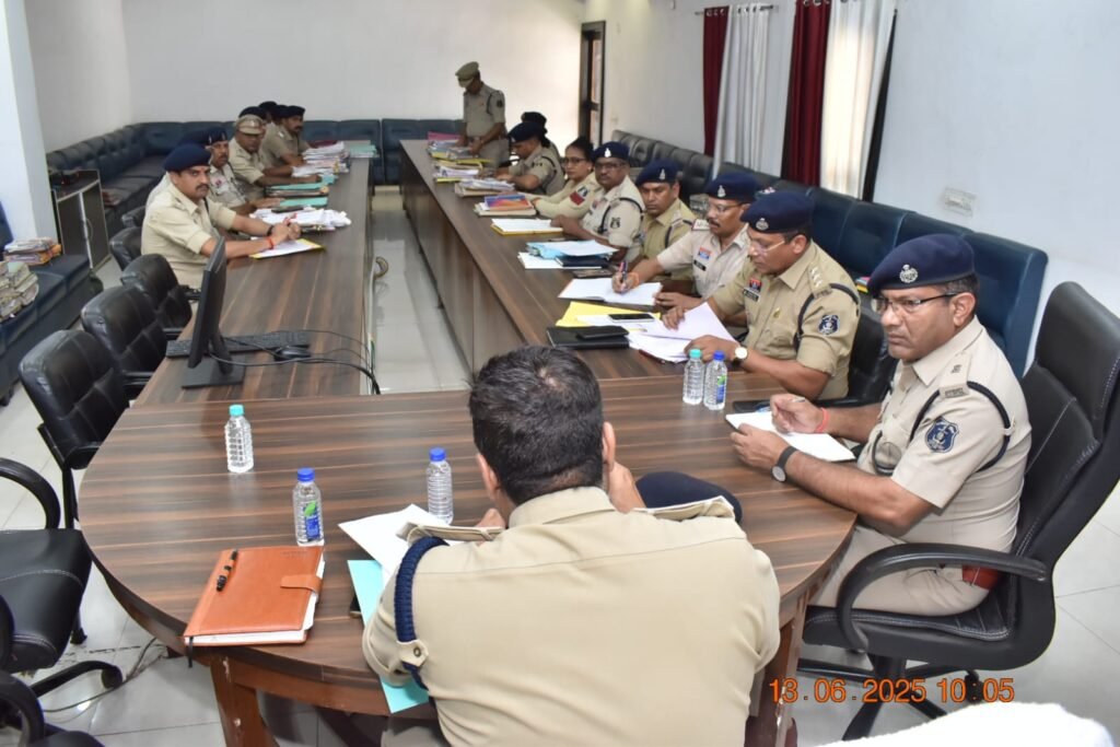 दुर्ग, 13 जून 2025: आज दिनांक 13/06/2025 को वरिष्ठ पुलिस अधीक्षक श्री विजय अग्रवाल (भा.पु.से.) ने दुर्ग जिले के पुलिस नियंत्रण कक्ष, भिलाई में दुर्ग अनुविभाग के सभी थाना एवं चौकी प्रभारियों की समीक्षा बैठक आयोजित की। इस बैठक में अनुविभाग के सभी थाना-चौकी प्रभारी और विवेचक उपस्थित रहे।