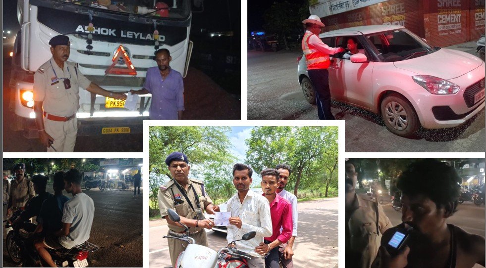 दुर्ग यातायात पुलिस की बड़ी कार्रवाई: नशे में वाहन चलाने वालों सहित 237 लापरवाह चालकों पर कार्रवाई