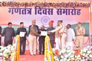 Durg : गणतंत्र दिवस पर उत्कृष्ट कार्य करने वाले यातायात पुलिस कर्मी सम्मानित
