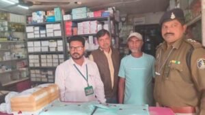 खाद्य एवं औषधि विभाग के औषधि निरीक्षक ने 9 सितंबर 2025 को नवापारा स्थित मेसर्स नवकार मेडिकल स्टोर्स का औचक निरीक्षण किया। निरीक्षण में बिल क्रमांक 460, दिनांक 23.09.2024 के आधार पर सिरप बैच नंबर बी 6019024, एक्सपायरी 12/25, MRP 114.94 की बिक्री दिखाई गई, जबकि जांच में यह दवा नकली और बिल फर्जी पाया गया।