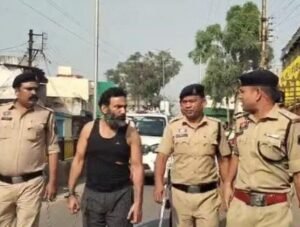 रायपुर। राजधानी रायपुर में पुलिस ने कुख्यात हिस्ट्रीशीटर वीरेंद्र सिंह तोमर का जुलूस निकाला। बताया जा रहा है कि वीरेंद्र तोमर पर सूदखोरी, रंगदारी और अवैध हथियार रखने जैसे कई गंभीर अपराधों के मामले दर्ज हैं। गिरफ्तारी के बाद पुलिस ने उसे सख्त कार्रवाई के तहत सड़कों पर घुमाया, ताकि अपराधियों में भय का माहौल बने।