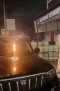 हाईवे पर जन्मदिन का जश्न: कार की बोनट पर काटा केक, सड़क पर फोड़ें पटाखे