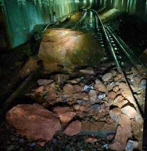 रेल ट्रैक पर गिरा विशाल पत्थर, रुकी कई ट्रेनें