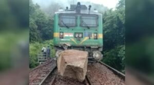 बोल्डर से टकराई मालगाड़ी, इंजन पटरी से उतरा — रेल यातायात ठप