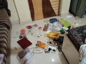 पीड़ित विनय केडिया 20 नवंबर को अपने परिवार के साथ शादी समारोह में शामिल होने के लिए घर बंद करके गए थे। रविवार को जब वे वापस लौटे, तो देखा कि घर का दरवाजा खुला हुआ है। अंदर जाकर देखा तो कमरों और दुकान में सामान पूरी तरह बिखरा पड़ा था।