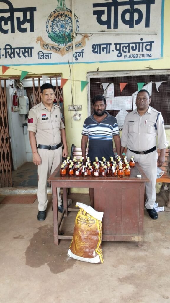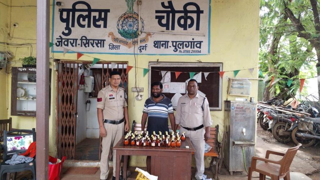 पुलिस चौकी जेवरा सिरसा ने अवैध शराब कारोबार के खिलाफ एक और सफल कार्रवाई करते हुए ग्राम कचांदूर में 61 पौवा देशी मसाला शराब के साथ एक व्यक्ति को गिरफ्तार किया है। ऑपरेशन विश्वास अभियान के तहत की गई इस कार्रवाई में पुलिस ने शराब, स्कूटी और नकदी जब्त कर आरोपी को न्यायिक हिरासत में जेल भेज दिया। दुर्ग पुलिस ने नशे के अवैध कारोबार पर अंकुश लगाने के लिए अपनी कार्रवाइयों को और तेज करने की बात कही है।