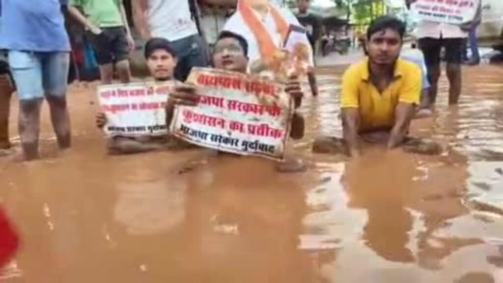 कवर्धा में NH-30 की बदहाली: गड्ढों में बैठकर कांग्रेसियों और मोहल्लेवासियों ने किया अनोखा प्रदर्शन
