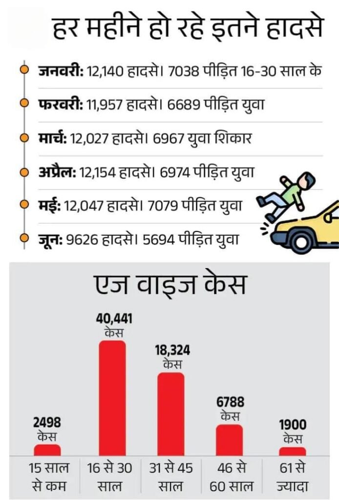 जो उम्र सपनों को हकीकत में बदलने की होती है, वह अब अस्पतालों के बिस्तरों पर जिंदगी की जंग लड़ते हुए बीत रही है। सड़क पर तेज रफ्तार का शौक, नियमों की अनदेखी और लापरवाही ने हजारों युवाओं का जीवन तकलीफों में बदल दिया है। आंकड़ों से पता चलता है कि सड़क हादसे न केवल शारीरिक चोट पहुंचाते हैं, बल्कि मानसिक घाव भी इतने गहरे होते हैं कि पीड़ित कभी पहले जैसे नहीं लौट पाते।
