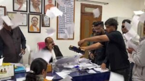 आरोपियों ने प्राचार्य कक्ष में घुसकर अश्लील गाली-गलौज, टेबल का कांच तोड़ना, सरकारी दस्तावेज फाड़ना, उन पर स्याही डालकर नुकसान पहुंचाना, और प्राचार्य की नेम प्लेट को विरूपित करने जैसी गंभीर हरकतें कीं। इतना ही नहीं, आरोपियों ने जूते की माला पहनाने का प्रयास किया और कार्यालय के अंदर धक्का-मुक्की कर भय का माहौल पैदा कर दिया, जिससे कॉलेज स्टाफ दहशत में आ गया।
