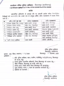 बिलासपुर में बड़ा प्रशासनिक फेरबदल: 8 पुलिस अफसरों के तबादले, चार थानों के प्रभार बदले