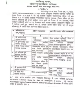 रायपुर। साय सरकार ने महिला एवं बाल विकास विभाग में प्रमोशन के बाद नई पदस्थापना सूची जारी कर दी है। विभाग के सात सहायक संचालकों को उपसंचालक और जिला कार्यक्रम अधिकारी के पद पर पदोन्नत करते हुए नई जिम्मेदारियाँ सौंपी गई हैं।