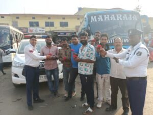 जिला मुख्यालय के प्रमुख चौक-चौराहों पर आयोजित इस कार्यक्रम में यातायात विभाग के अधिकारियों और जवानों ने सड़क पर चलने वाले ‘सारथियों’ (चालकों) को रोककर उनका स्वागत किया। एम्बुलेंस चालक, बस ड्राइवर, ऑटो-टैक्सी चालक और कार चालकों को उनकी अनवरत सेवाओं के लिए गुलाब का फूल देकर सम्मानित किया गया।