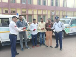 महासमुंद में ‘गुलाब’ से सुरक्षा का पैगाम: सारथी दिवस पर पुलिस ने चालकों को सराहा, नियमों के पालन की दिलाई शपथ