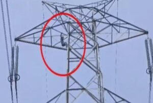 नशे में 120 फीट ऊंचे हाईटेंशन टावर पर चढ़ा किसान, पुलिस ने समझाकर उतारा
