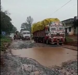 Sarguja-Balrampur में बारिश ने बिगाड़ी नेशनल हाईवे 343 की सूरत, गड्ढों में फंसी गाड़ियां