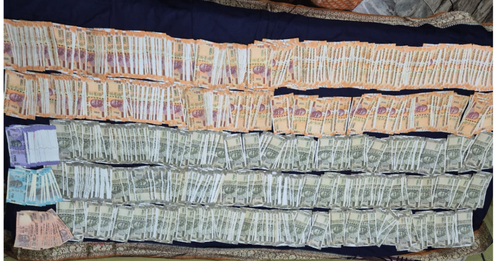 ओडिशा के कोरापुट जिले में विजिलेंस विभाग ने एक बड़ी कार्रवाई करते हुए डिप्टी फॉरेस्ट रेंजर रामा चंद्र नेपाक के घर पर छापा मारा। इस छापेमारी में लगभग डेढ़ करोड़ रुपये नकद, सोने के आभूषण, तीन प्लॉट और एक कार जब्त की गई। रेंजर के फ्लैट से 1.4 करोड़ रुपये नकद, चार सोने की ईंटें और 16 सोने के सिक्के (प्रत्येक 10 ग्राम) बरामद किए गए।