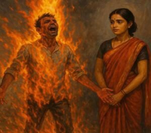 पत्नी ने पेट्रोल छिड़का, आग लगाकर घर से भागी
