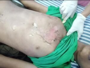 घटना के समय प्रभात की पीठ और छाती से धुआं निकलता देखा गया, जिसके बाद वह बेसुध होकर गिर पड़ा।