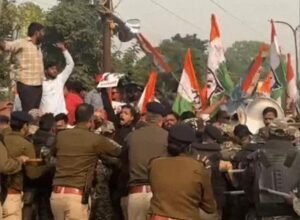 जैसे ही प्रदर्शनकारी भाजपा कार्यालय की ओर बढ़े, पुलिस ने उन्हें रोकने के लिए बैरिकेडिंग की। इसी दौरान प्रदर्शनकारियों और पुलिस के बीच झड़प हो गई। गुस्साए कार्यकर्ताओं ने बैरिकेड तोड़ दिए, जिससे कुछ देर के लिए हालात तनावपूर्ण हो गए।