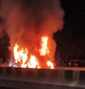 इंजन से उठा धुआं, मिनटों में आग ने लिया विकराल रूप