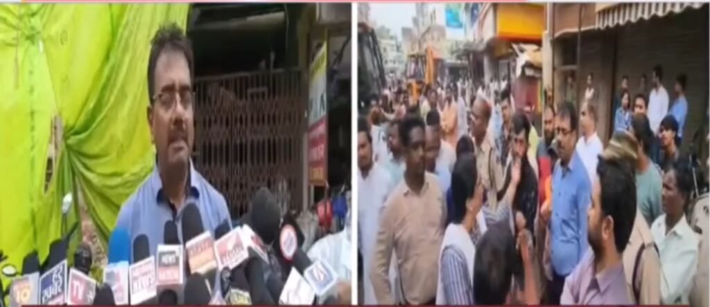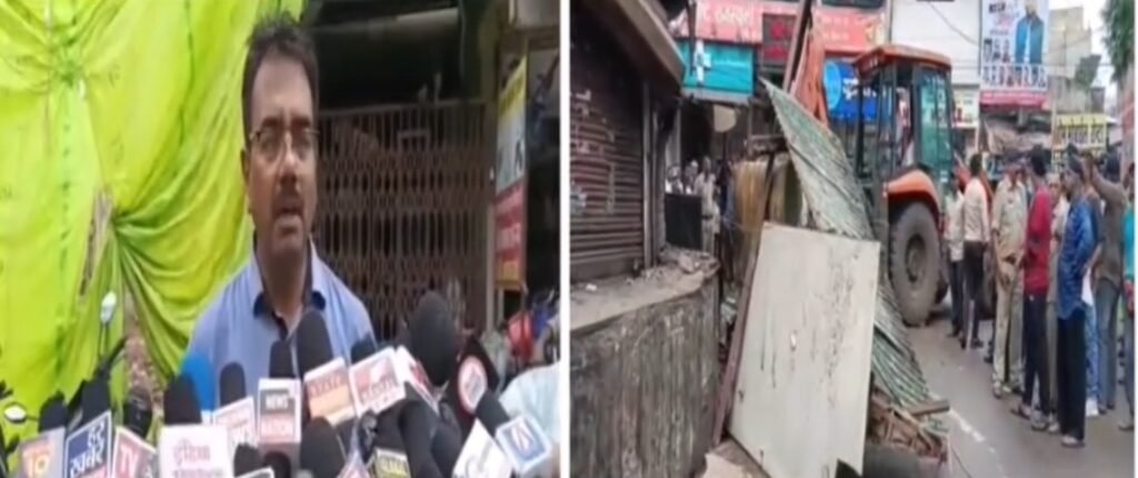 राजनांदगांव में अतिक्रमण पर प्रशासन का बुलडोजर: जय स्तंभ चौक से हटाए गए अवैध निर्माण, व्यापारियों का विरोध