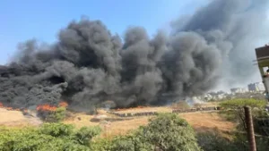 रांची | झारखंड की राजधानी रांची के बरियातू पहाड़ी इलाके में शनिवार को उस समय हड़कंप मच गया, जब भारतीय सेना की फायरिंग रेंज में रखे टायरों के बड़े स्टॉक में अचानक आग लग गई। आग इतनी भीषण थी कि आसमान में काले धुएं का गुबार छा गया, जिसे कई किलोमीटर दूर से देखा जा सकता था।