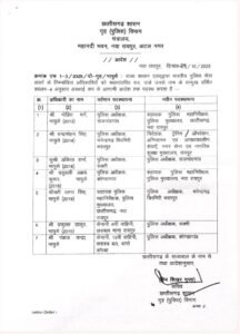 राज्य शासन द्वारा भारतीय पुलिस सेवा (भा.पु.से.) के वर्ष 2013 से 2019 बैच के अधिकारियों को विभिन्न जिलों और पुलिस मुख्यालयों में नई जिम्मेदारियां दी गई हैं। आदेश तत्काल प्रभाव से लागू होगा।