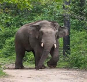 जंगल से भटकर झोपड़ी तक पहुंचा हाथी