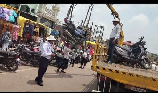 नो पार्किंग में खड़े वाहनों पर कार्रवाई